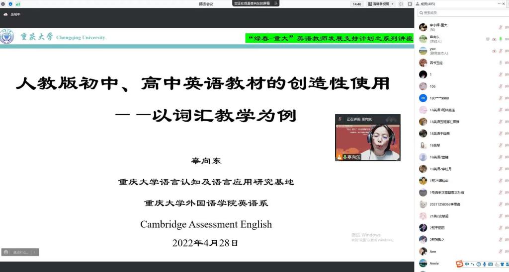 充分发挥学院专业优势和优秀教师资源的优势,关心偏于地区中小学英语教育质量,为促进教育公平贡献自己的力量。学院将继续组织专家教授们为中小学英语教师发展提供更多支持。