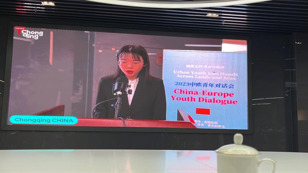 “油橪而生”研究团队研发出低碳环保且安全可靠的植物绝缘油来替代矿物油,从而推动了变压器技术绿色、高效发展。讲解了作为身在重庆的一名大学生见证了重庆作为一个传统的工业城市,在节能减排方面做出的巨大努力。胡亚悰同学以自身专业学习和研究为例,阐释了中国青年在在应对气候变化方面发挥着重要作用。胡亚悰还与欧洲青年分享了伦理电影