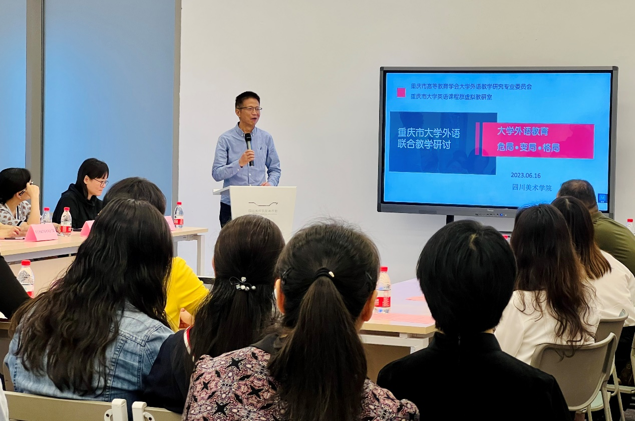 四川美术学院通识学院赵春华院长首先向来自市内兄弟院校同行介绍了通识学院作为四川美术学院通识教育的重要教学单位,承担着培养高素质、创新性、实践型人才的重任。强调外语教育在培育广泛人文素养、开阔学术视野、提升国际交流与沟通能力中的重要作用。