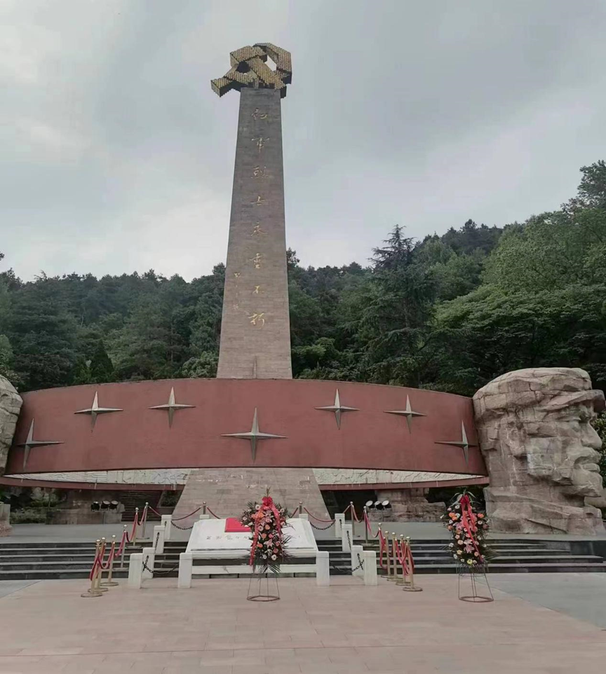 整个陵园庄严肃穆,正面是在纪念遵义会议五十周年时兴建的一座别具特色的纪念碑,碑上是邓小平同志手书的竖写“红军烈士永垂不朽”八个金色大字。站在墓碑下,实践团成员深受震撼,对红军战士那不怕困难,顽强拼搏的抗战精神有了更深的体会。