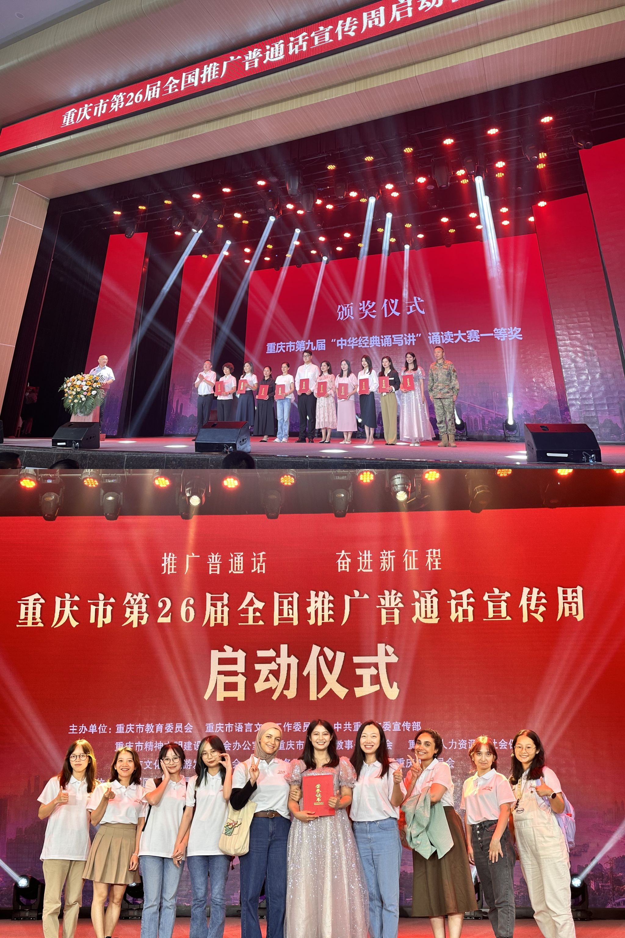2023年9月12日,重庆市第26届全国推广普通话宣传周启动仪式暨重庆市第九届“中华经典诵写讲”颁奖仪式在重庆市第一中学举行。由电影学院刘姗姗副教授指导的重庆市诵读大赛留学生组一等奖获得者——来自泰国的鲁芬( 伦理电影