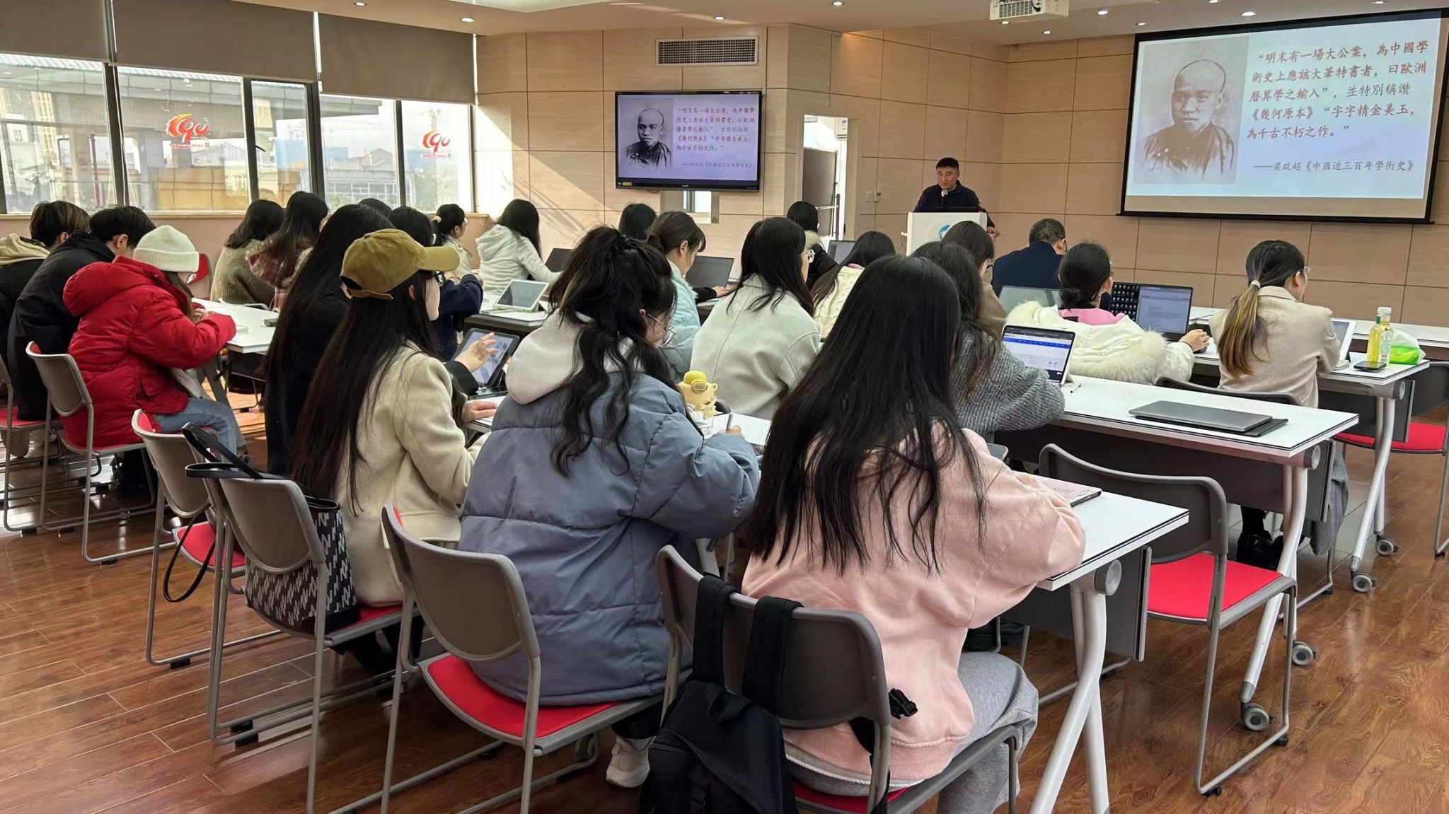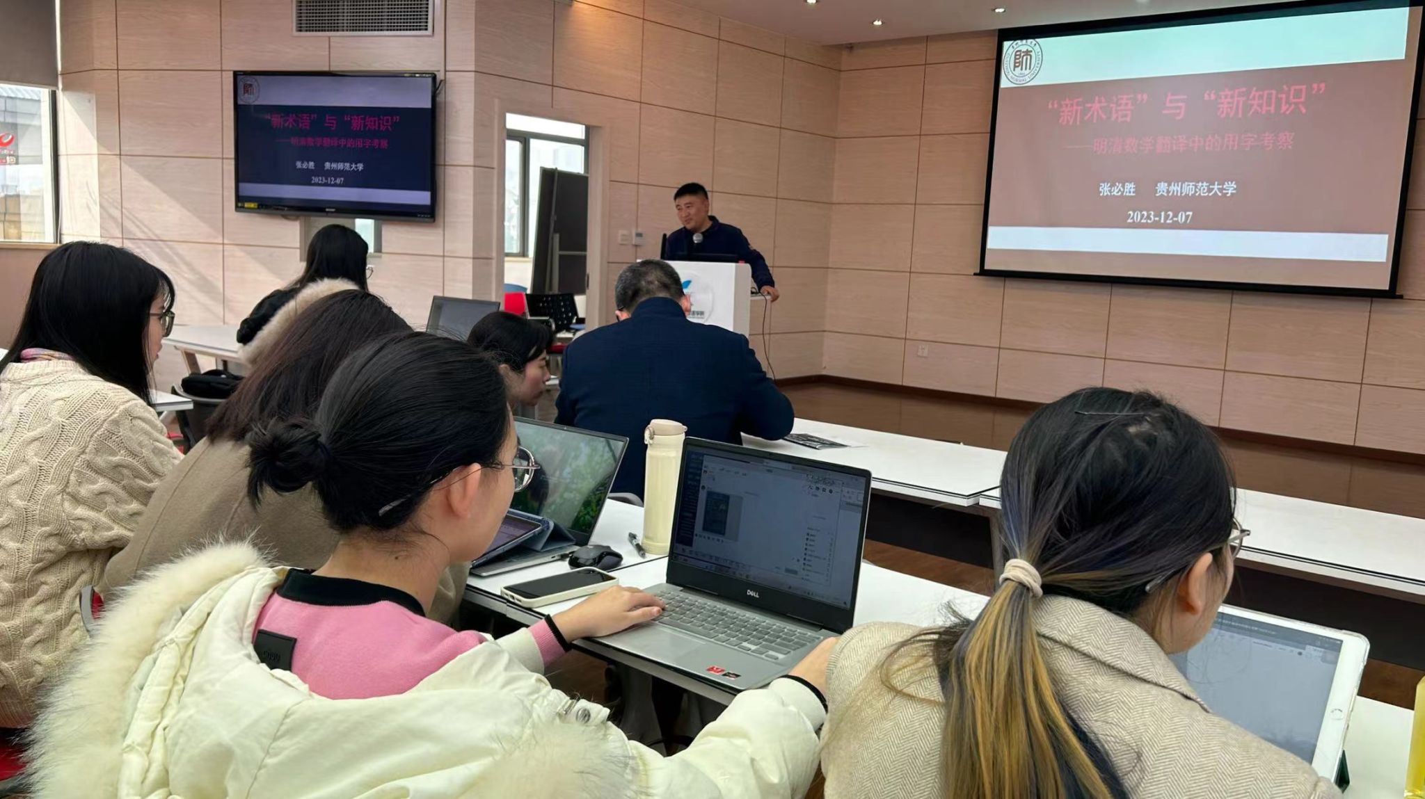 翻译硕士参加了一场由贵州师范大学张必胜教授主讲的讲座。本次讲座主题为《“新术语”与“新知识”:明清数学翻译中的用字考察》,深入探讨了明清两朝在翻译西方数学作品过程中所形成的汉译数学术语体系及其背后的知识体系。