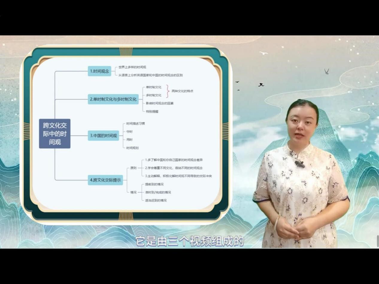 国际中文教育系龙藜老师针对汉语国际中文教育专业本科留学生的特点设计了“跨文化交际中的时间观”系列微课。课程内容既涵盖了多元时间观的基本理论和知识、中国文化中的时间观,又为留学生在自己国家培养中文学习者的交际能力提供了建议。课程还为留学生提供了丰富的学习资源,例如词汇表、课程思维导图、练习等。该作品能够有效帮助留学生提升跨文化交能力和中国文化传播能力。