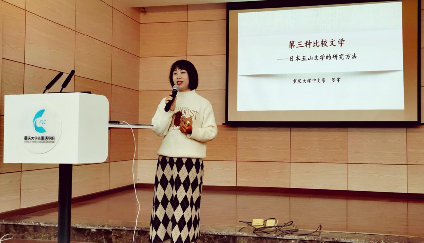 人文社会科学高等研究院罗宇老师,进行了题为“第三种比较文学——日本五山文学的研究方法”的学术讲座。主讲人罗宇老师主要从事东亚比较文学、唐宋文学研究,主持国家社科基金青年项目“苏轼对日本五山文学之影响研究”,在《外国文学评论》等期刊发表论文。本期研究生学术分享环节,由研二王琦和研一赵巧尧两位同学分别以“从‘训读’看古代汉语在日传播”和“音乐训练对日语单词声调感知的影响——基于对伦理电影