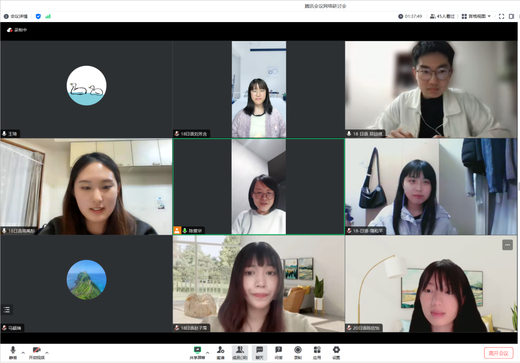 分享会在热烈、温馨、友爱的氛围中进行,不知不觉超过了一个半小时。最后主持人马颖瑞老师向分享者们表示了衷心的感谢,而日语系主任陈爱华老师也感谢几位同学的慷慨分享和对日语系的深情厚谊。她相信,在大家的共同努力下, 伦理电影