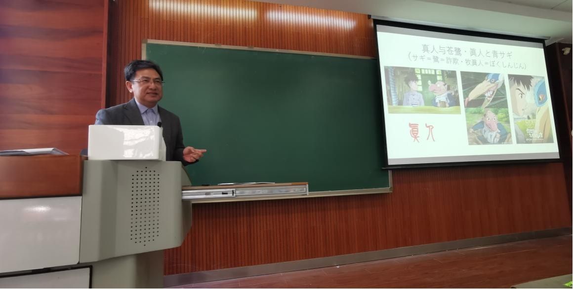 日语系还举办了本年度第2期“观读园”系列读书观影活动,以宫崎骏作品鉴赏为主题的“红房子”观影活动,并且围绕秦刚教授《捕风者宫崎骏:动画电影的深度》及托马斯·拉马尔《动画机器:动画的媒体理论》等书籍展开了讨论会。在“观读园”系列读书观影活动上,主持人史卓玉同学和进行分享的陈姿懿、雷峻屹、官瑞雯等同学分别从宫崎骏的艺术风格、对战争的反思、禅宗思想、心灵治愈等方面,报告了观影、读书的心得体会。秦刚教授作为特别嘉宾参加了讨论会,并与师生们进行了深入的交流互动。