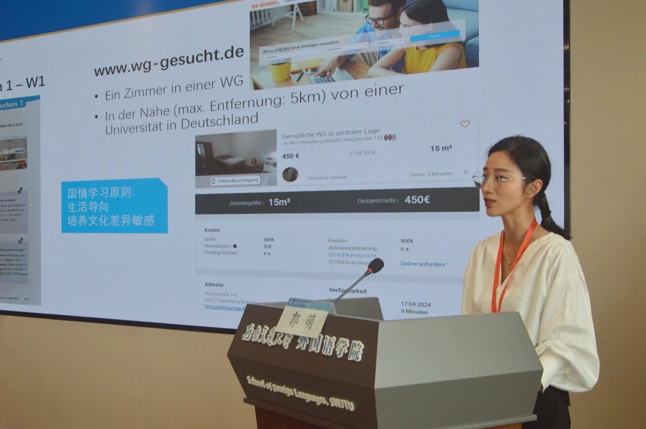 在会上做了题为“整合式教学游戏与德语课堂的有机融合——以《新经典德语1学生用书》第六课为例”的专题报告。