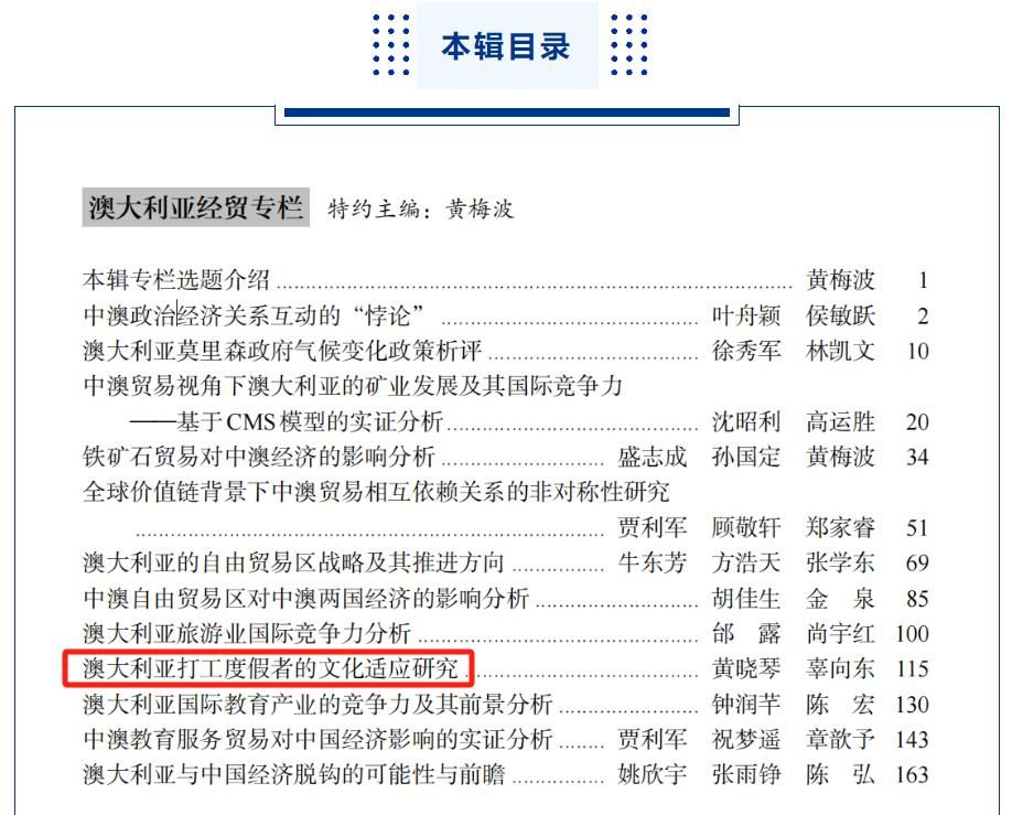 语言认知及语言应用研究基地专职研究员辜向东教授指导2022级博士生黄晓琴在《当代外语研究》2024年第3期及《澳大利亚研究》第六辑发表高水平会议综述和学术论文。题目分别为“另辟思路,行动改变——第45届美国应用语言学年会综述”和“澳大利亚打工度假者的文化适应研究”。