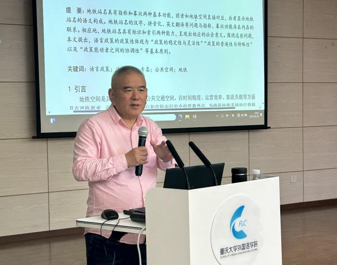 2024年10月28日晚,北京语言大学卢德平教授应邀在学院楼501学术报告厅,为师生带来了以“北京地铁站名的语言政策分析”为主题的学术讲座。刘扬教授担任主持,院内外教师及各年级本科生、研究生80余人聆听了讲座,并展开了交流对话。