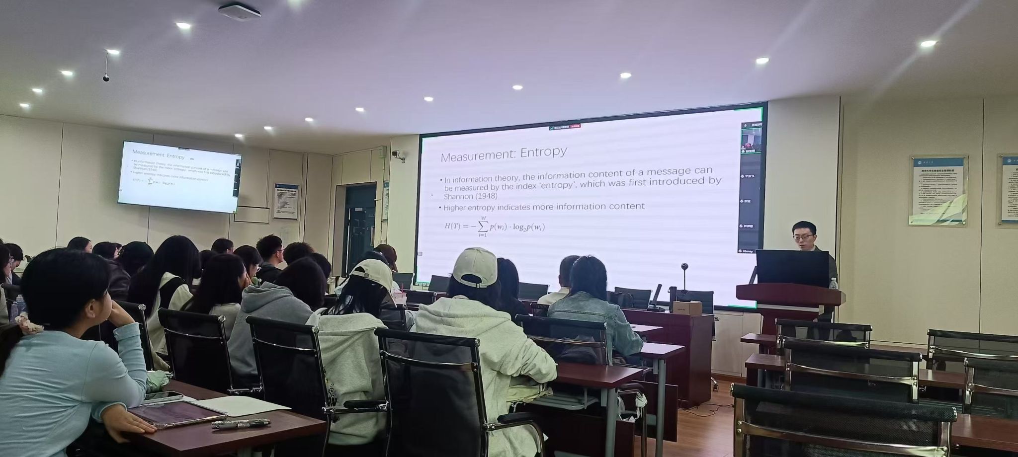 肖老师首先介绍了论文To move or not to move: An entropy-based approach to the informativeness of research article abstracts across disciplines的主要内容,包括研究背景、研究方法、研究结果、结论与启示等。随后,肖老师与大家分享了这篇文章的投稿历程,包括每一轮的审稿意见、如何抓住审稿人漏洞进行反驳、如何针对审稿人的问题进行回复与修改、在漫长的投稿周期如何保持保持积极心态等。最后,肖老师针对如何进行有效的师生合作、如何选择合适的投稿期刊、如何进行数据可视化等现场提问开展了进行了解答。此次讲座取得了圆满成功。