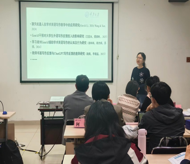 周梅教授在平行论坛宣读论文“GenAI在学术英语论文写作项目驱动式教学中的应用研究”。该研究探讨了如何将生成式人工智能融入高校学术英语论文写作项目驱动式教学并详细分析了教学实证研究的结果,强调培养学生人机互动协商能力的重要性和紧迫性。此外,作为平行论坛点评专家,周梅教授还与老师们就专门用途外语教学与研究的相关议题进行了进一步的交流和探讨。