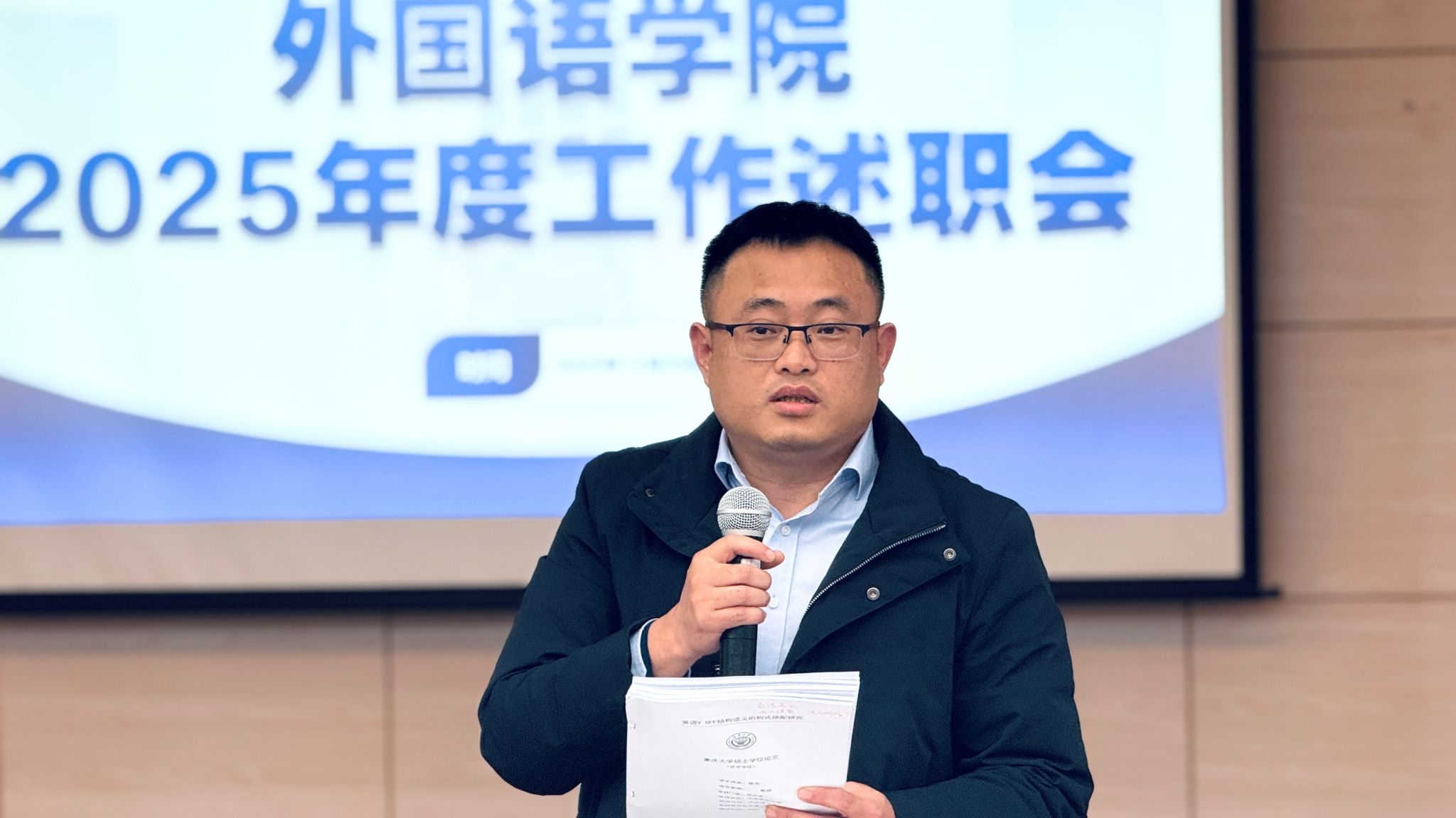 述职环节结束后,院长莫启扬作总结讲话。他首先肯定了本次述职的组织成效与交流价值,指出年度述职既是对照年初计划的必要盘点,也是促进相互学习、形成良性竞争的重要机制,落实“千斤重担大家挑,人人肩上有指标”的要求。他特别提到,在全院上下的共同努力下,学院年度发展取得了显著进步,如在软科排名中实现了位次提升,但同时强调需保持清醒,通过总结反思谋求更大发展。展望未来,他鼓励各系部积极对外调研,拓展发展视野,并勉励全体教师继续凝心聚力,共同推动学院各项事业再上新台阶。