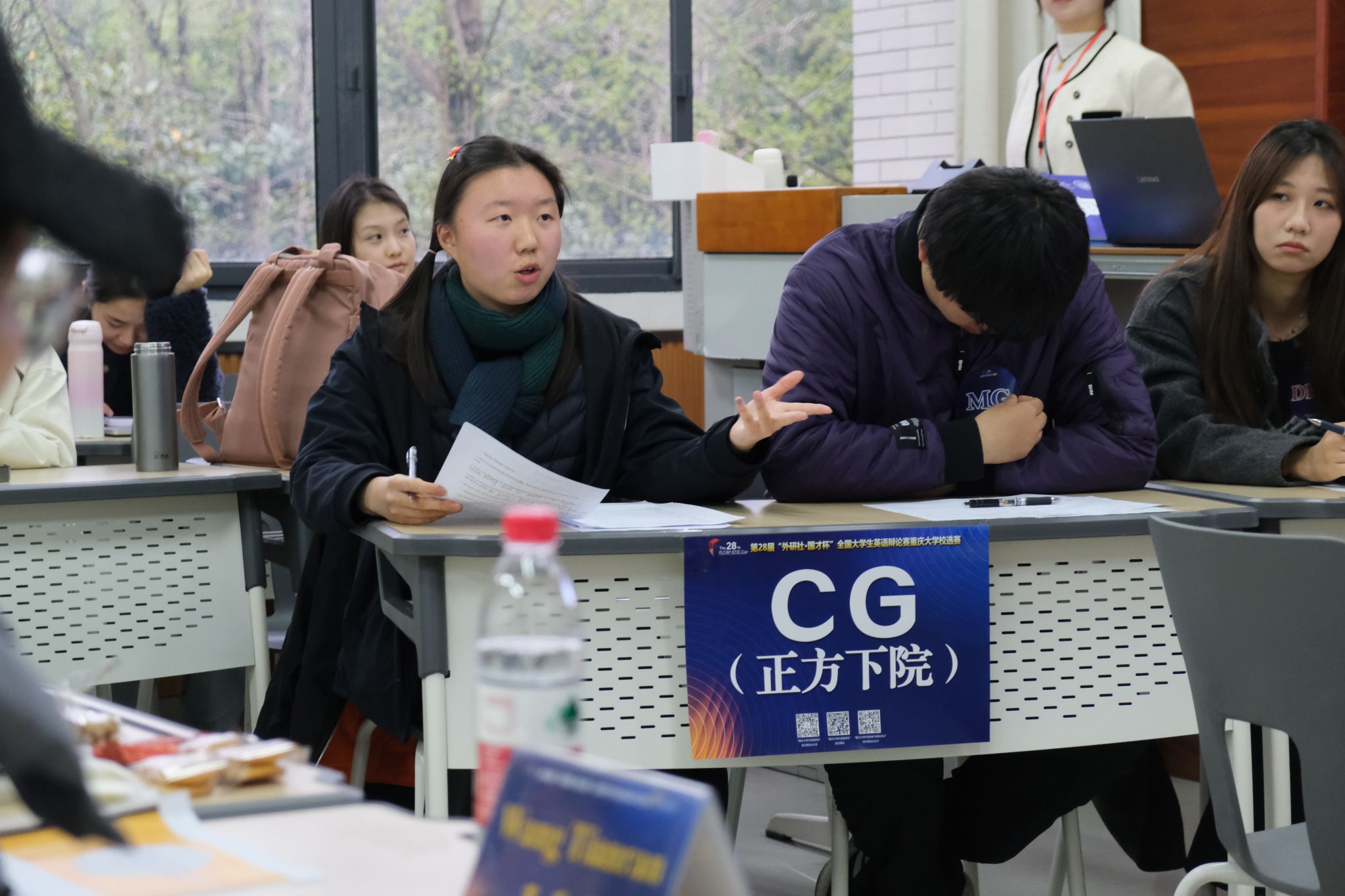 复赛阶段,四赛场同时进行比拼,思维交锋在不同赛场上激烈展开。辩题“Poverty should be treated primarily as a matter of misfortune rather than injustice?”直指贫困本质,引发选手对“成因归因”的深层追问。正反双方未止步于表面现象,而是巧妙结合真实案例,从环境、文化、制度等维度切入,将“贫困是不幸”与“贫困是不公”置于价值坐标中进行辨析,在抽象概念与现实图景之间架起桥梁。经过激烈比拼,各赛场个人得分前四名脱颖而出,共计16人成功晋级半决赛。