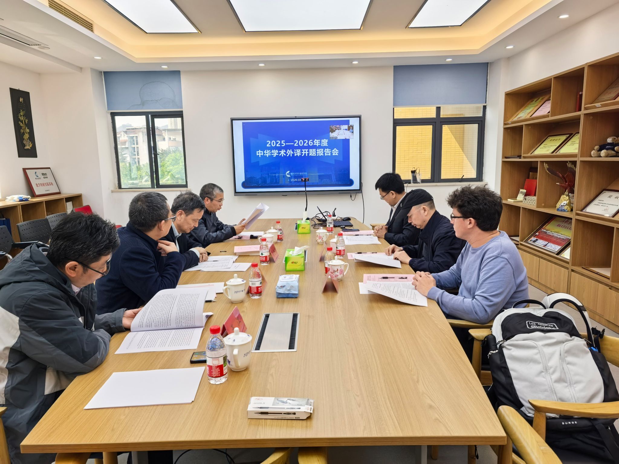 答辩委员会专家成员重点围绕《开题报告书》所列各项方案,尤其是翻译样章质量与项目实施细节,对项目团队进行了指导。胡安江从学术外译的精准性与传播效果出发,在术语统一、篇章结构处理等方面提出了细致建议。雷冬平针对原著中专业概念的跨语言转换、文化负载词的处理方式给予了具体指导。Patrick则从英文译文的地道性、目标读者接受度及国际学术出版规范方面提出了建设性意见。项目组就答辩委员会提出的问题进行了回应,并与专家展开了深入交流与讨论。