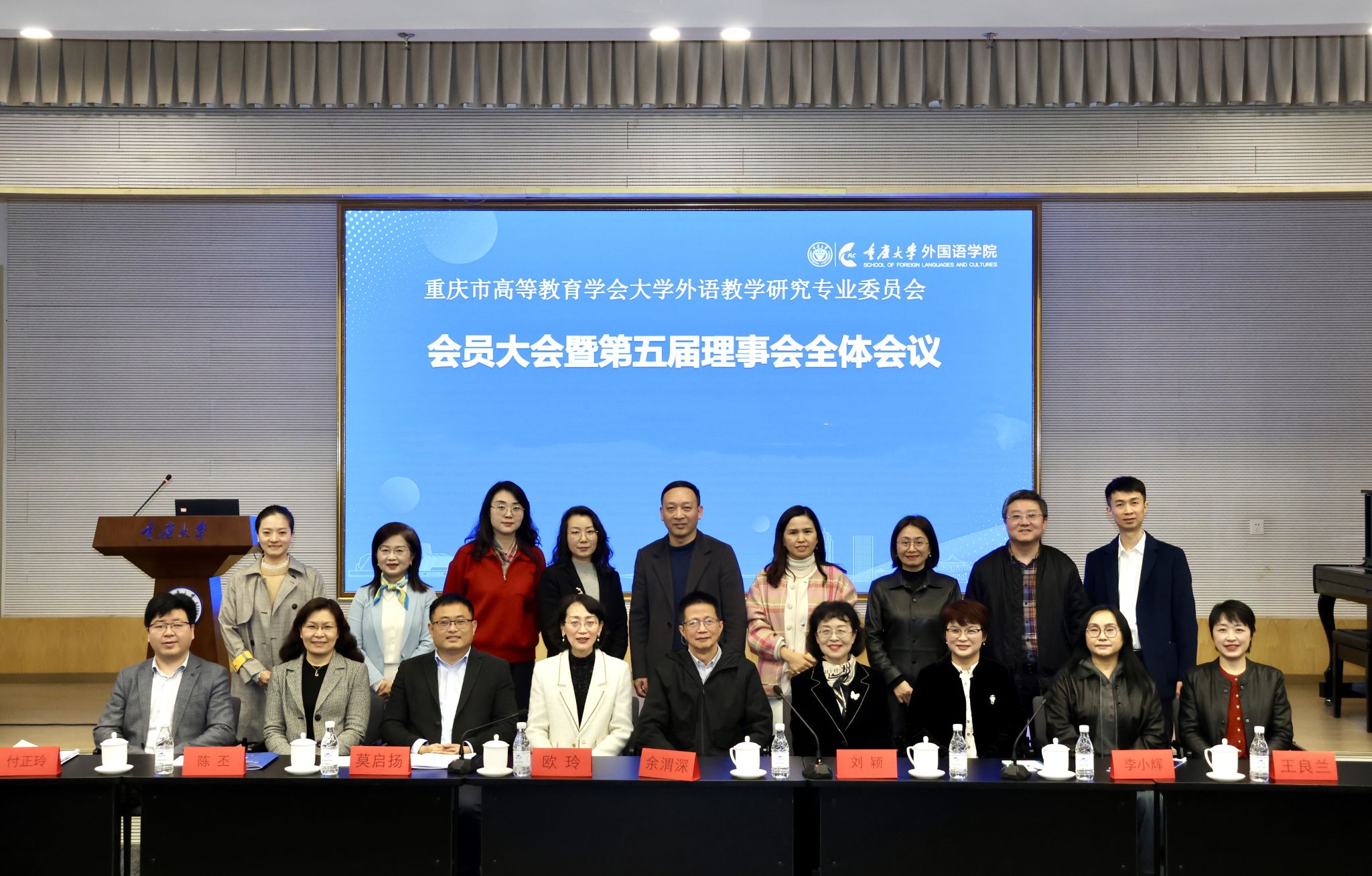会上,刘颖副秘书长代表学会致辞,并宣读换届批复文件。她充分肯定第五届理事会在国际化人才培养、深化大学外语教学改革、促进教师专业发展等方面的显著成效,并特别感谢余渭深教授二十余年对大学外语教学研究专业委员会和重庆市大学外语教育的创新引领,同时勉励新一届理事会继续聚焦高质量发展,服务重庆高水平对外开放战略,为提升重庆国际竞争力贡献外语教育力量。