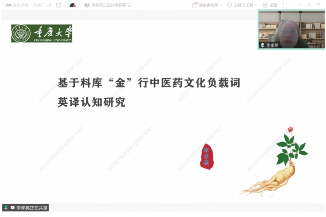 李孝英教授通过腾讯会议线上平台,为该院师生带来题为“基于语料库‘金’行中医药文化负载词英译认知研究”的学术报告。本次讲座由山东大学翻译学院翻译研究团队负责人王峰教授主持,该院教师及研究生共同参与本次学术交流。