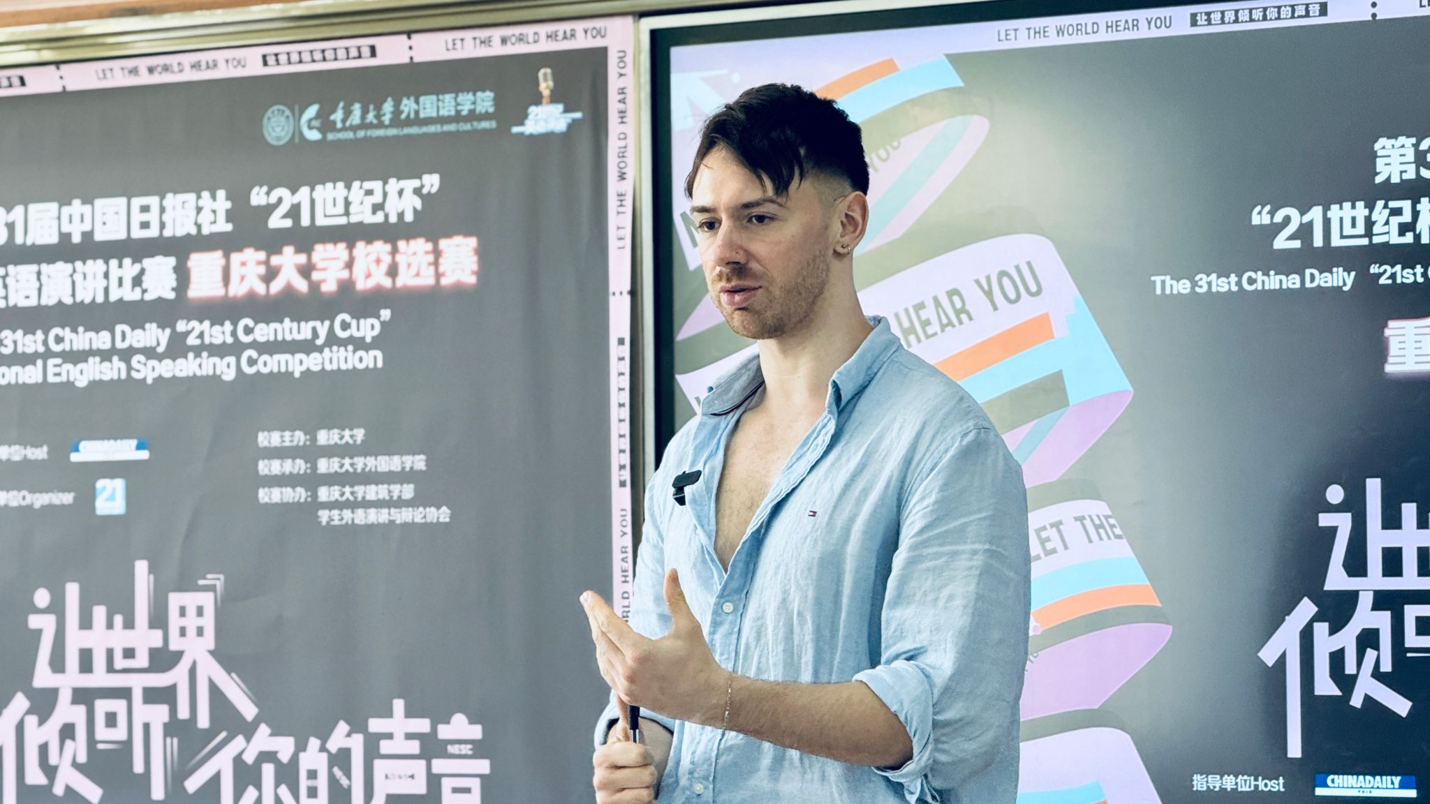 比赛结束后,评委老师Jordan Roman Kruszynski对本次赛事进行了点评。他充分肯定了选手们的表现,认为大家准备充分、视角多元、表达自然,能够较好地将主题理解与个人思考相结合。同时,他也指出,演讲不仅是语言内容的呈现,更是与听众交流的过程,建议选手通过自然的走位和眼神交流增强现场表现力,提升演讲的感染力。