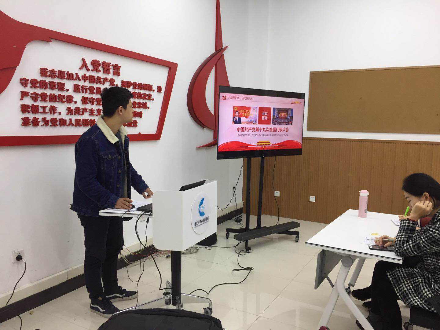 105党员活动室举行了主题为“十九大精神进支部”之“科技创新”的组织生活会。此次组织生活会特别邀请了马克思主义学院十九大精神宣讲团成员进行宣讲,以一种别开生面的形式加深了我们每一个支部成员对十九大的认识。