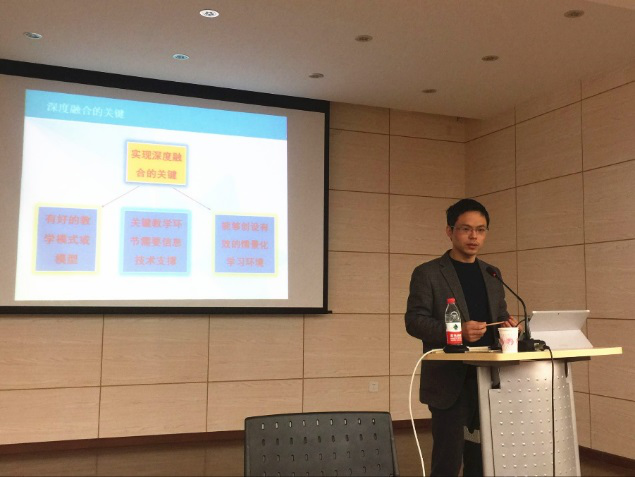 随后,张教授重点讲解了信息技术与教育教学深度融合的内涵和发展路径。从教师、学生、教学内容、教学媒体四大要素的变化出发,解析了信息时代下课堂教学的结构性变革,并且以布鲁姆教学目标分类学为依据,指出现代教育发展追求高级认知目标的特点。教师需加快角色转变,将信息技术从一般性的辅助工具发展为支持创新能力培养的革命性工具。与此同时,张教授还通过分析基于MOOC的翻转课堂,雨课堂及蓝魔云班课等案例,引导教师在好的教学模式中利用信息技术,为学生创造有效的情景化学习环境。最后,张教授结合 伦理电影