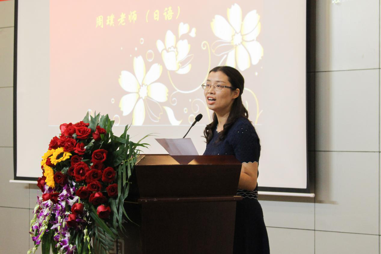 结束了学生代表的发言,班主任代表日语系周璞老师也分享了她的心得。周璞老师向同学们分享了两个字:主动。“主动学习、主动交流,年轻的我们对周围世界的适应能力超出想象!”