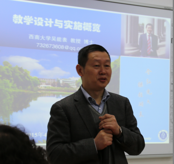 承接第一讲的“课程设计”和第二讲的“深层教学法”,本次讲座的主题是“如何进行教学设计”,讲座嘉宾是西南大学教师教学发展中心主任吴能表教授。