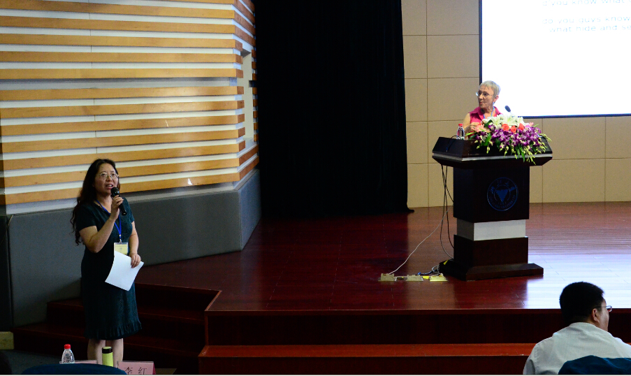 2014年10月18日下午,李红教授主持大会主旨发言,发言者为夏威夷大学教授Gabriele Kasper。主旨发言结束后,李红教授作为下一届研讨会主办方代表,向与会者介绍了重庆及伦理电影