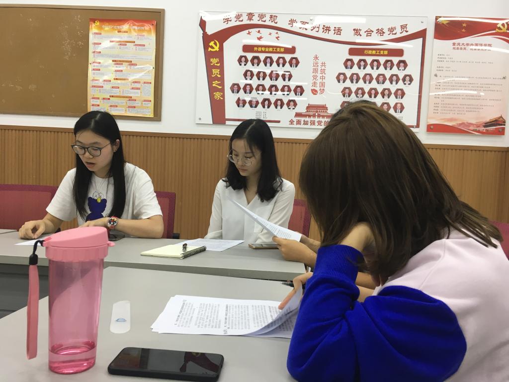 首先,游振声老师对2019级的党员同志表示了热烈欢迎。并邀请大家做自我介绍,相互认识。接下来,段欣宜同志为大家介绍了支部近期的工作计划,入党积极分子培训报名和发展对象培训报名将陆续展开。