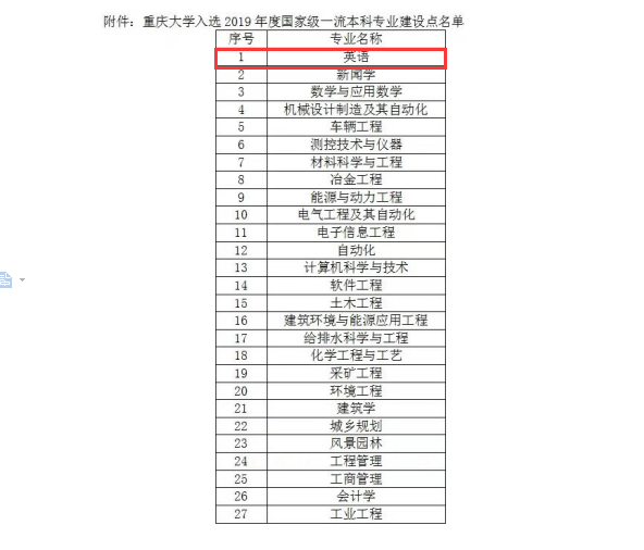 英语专业成功入选。