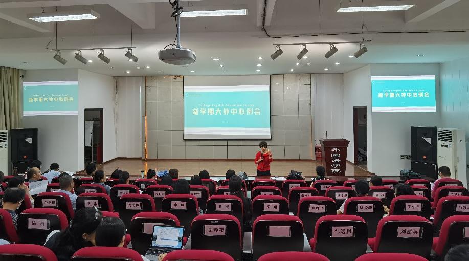 多功能厅顺利举行。会议由李小辉副院长主持,余渭深教授主讲。大学英语教育中心近80位老师参加了此次情况通报会。