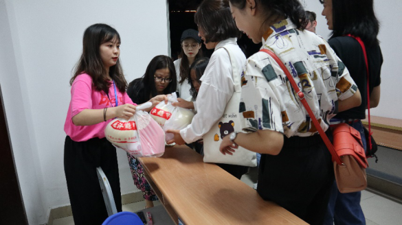 开学典礼结束后,学院进行了慰问新生活动,用柚子和苹果寓意“护佑同学们一生平安”。院领导将慰问品分别送给教官与学生代表并合影留念。
