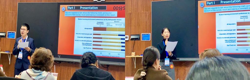 参赛选手周佳清、董乐诗与其他20所本科高校的20名选手在非英语专业本科组同场竞争,最终凭出色发挥分别以排名第二、第三的成绩进入决赛。下午14:25-16:30,三组晋级决赛的20名选手分非英语专业本科组和非英语专业专科组同台角逐大赛胜利。随着比赛难度升级及赛场氛围紧张, 伦理电影