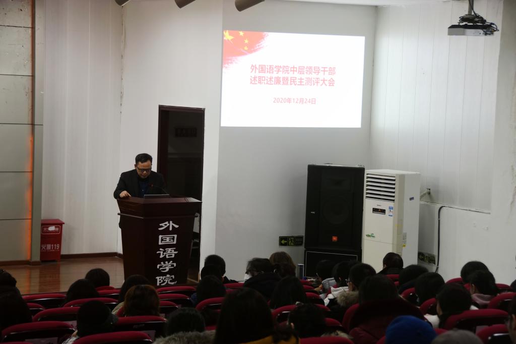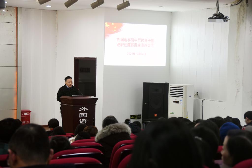 在学院楼二楼多功能厅召开了2020年度中层领导干部述职述廉暨民主测评大会。学校考核组成员党委统战部副部长黄萍、党委办公室正科级秘书张玮玮及学院全体教职工参加了会议。会议由学院党委副书记、纪委书记魏世平主持,他首先介绍了会议安排,希望广大教职工认真开好会议、履行好监督职责。