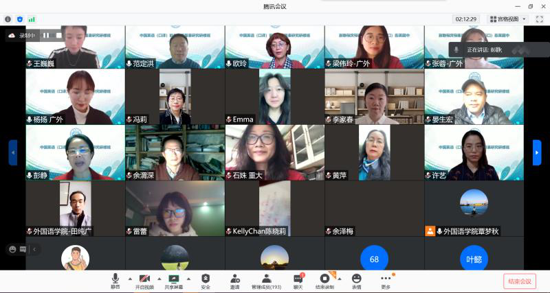 师生全面解读相关内容,希望师生积极参与,深入研讨。穆雷教授作为研修班总主持人,首先从宏观层面对中国英语能力等级量表(CSE)的研发背景、研制历程及作用影响作整体介绍;其次分享了CSE口译能力等级量表(口译量表)团队的基本情况及参与CSE项目的历程;最后基于我国外语教育现状,结合CSE研发成果,对翻译专业设置理据、外语教师的教研能力发展、学生自主学习等问题作了深入阐述,肯定了本次研修班的重大意义。