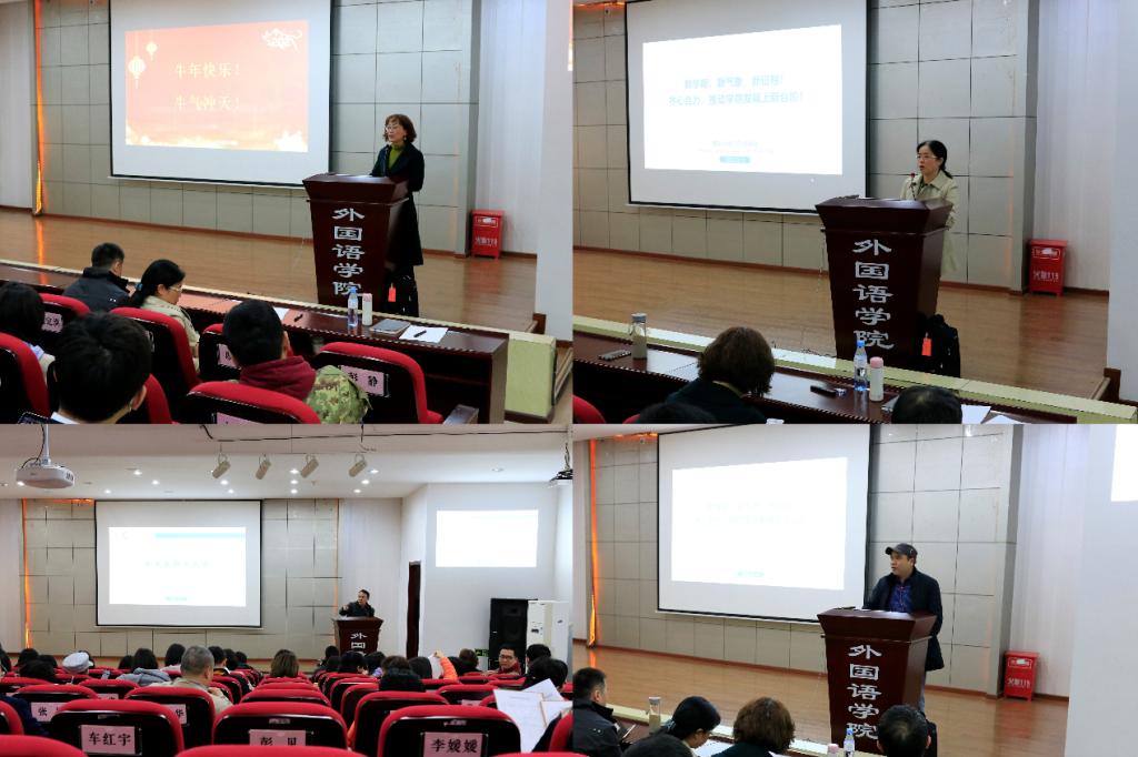 接着,彭静院长阐述学院“十四五”发展规划。强调五年规划非常重要,学科发展非常艰辛,希望教职工能够勇立潮头。强调专业教育是学院发展的根基,要迎接重大挑战,提高培养质量,提升办学质量,吸收优质本科生源,加强研究生教育课程建设,关注研究生创新项目及科研,确保学院可持续发展。同时,大学外语本科教育要适应政策变化;研究生公共外语教育要侧重国际化。希望教师根据自身发展提升学历,提高学术研究能力,号召教师积极参与课题申报,积极参加重要学术会议,鼓励教职工积极承担院内管理事务。