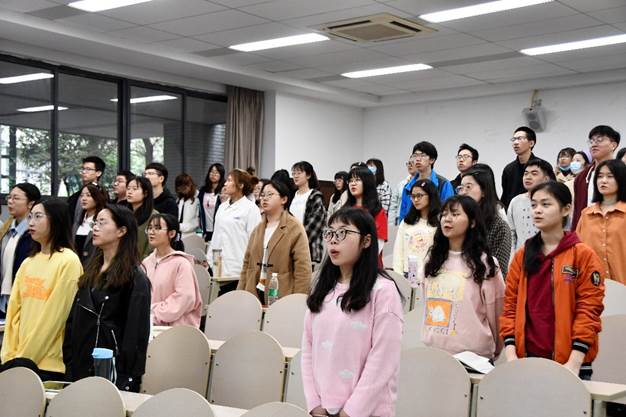 党委副书记魏世平,药学院团委书记贾沂伟及各学院团校学员参加了典礼。由于部分同学接种疫苗,开课仪式和第一次课程通过腾讯会议线上线下同步进行。