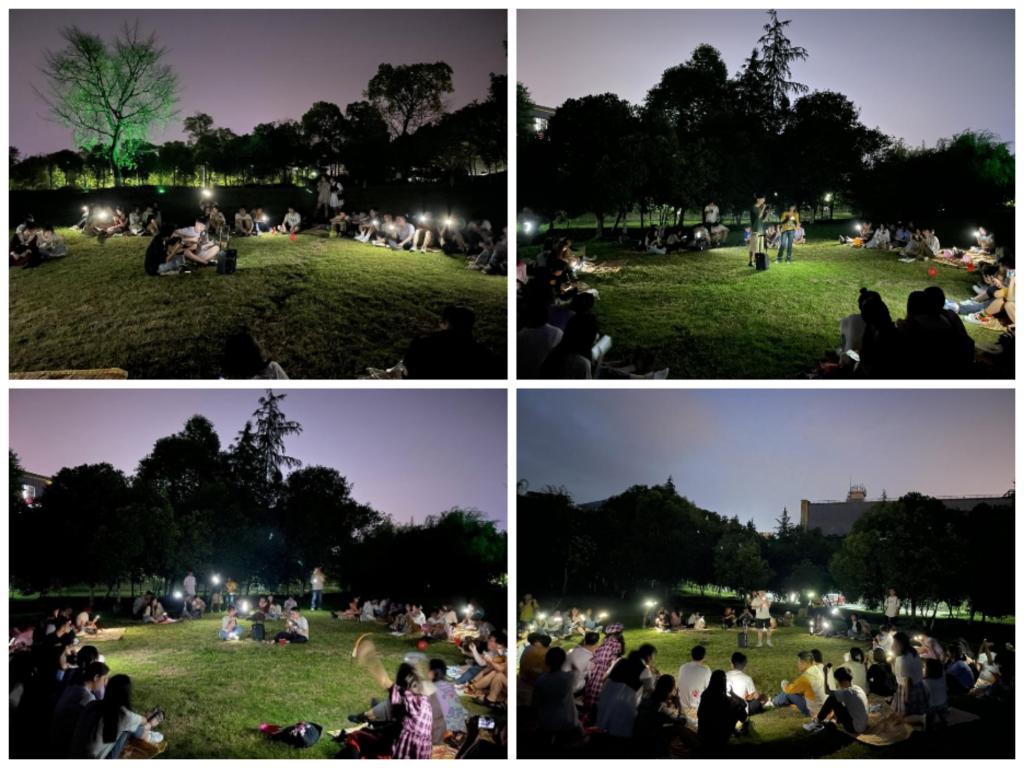 随着主持人宣布本次联合团日活动室内部分全部结束后,全体同学成列十组有序从多功能厅出发前往室外活动场地综合楼后方草坪。室外部分主要以轻松愉快的活动为主,让大家在游戏和互动中交流感情,加强各支部团员间的友好关系。节目表演环节各个同学大显身手,一展青春风华,给大家的课余生活增添了一笔彩色。