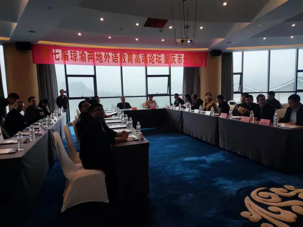 孙浪教授、海南师范大学陈义华教授、重庆交通大学杨学云教授、海南医学院窦岩教授分别做了题为“高校外语教学新文科建设的层级问题”、“海南自贸港建设的语言需求与服务对策”、“从加拿大名校的角度看如何建立一流学科和专业”、“一流专业的内涵建设及其路径海南师范大学”、“面向“一带一路”倡议的涉外工程英语人才培养模式探索与实践“、“立足海南,放眼未来,培养一流医学人才”六场主旨发言。符存主持了海南大学金山教授的发言。下午,琼渝两地教师就“新时代背景下的一流专业建设”、“‘一带一路’愿景下的语言服务研究”两个主题开展了平行分论坛,进行了充分讨论。