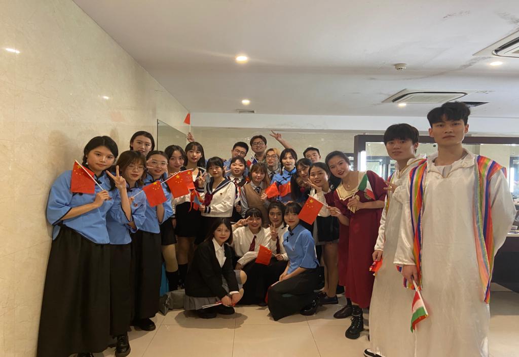 的多国语言版《少年·中国说》是由25位青春活力的表演人员组成的表演团队。同学们运用中文、韩语、意大利语、阿拉伯语以及西班牙语等八国语言,采取朗诵梁启超先生的《少年说》和演唱歌曲《少年》的相结合的形式展示出当代中国少年的青春活力和积极向上的精神面貌,以庆祝党的百年华诞。