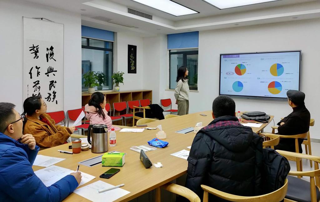 “创新教学以强校”理念的指导下,德语系非常重视研究性学习混合教学模式的开发和运用。同时,为支撑德语系市级一流本科专业建设点的成功申报,德语系教师也一直在加强自我学习,进行一系列主题教学研讨活动。由此,在2021年12月30日,德语系全体教师进行了以“小组合作式学习”为主题的教研活动。