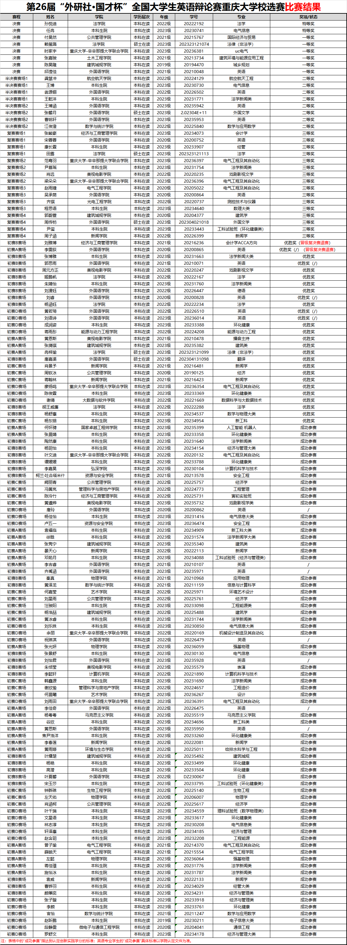 现将比赛结果予以公布: