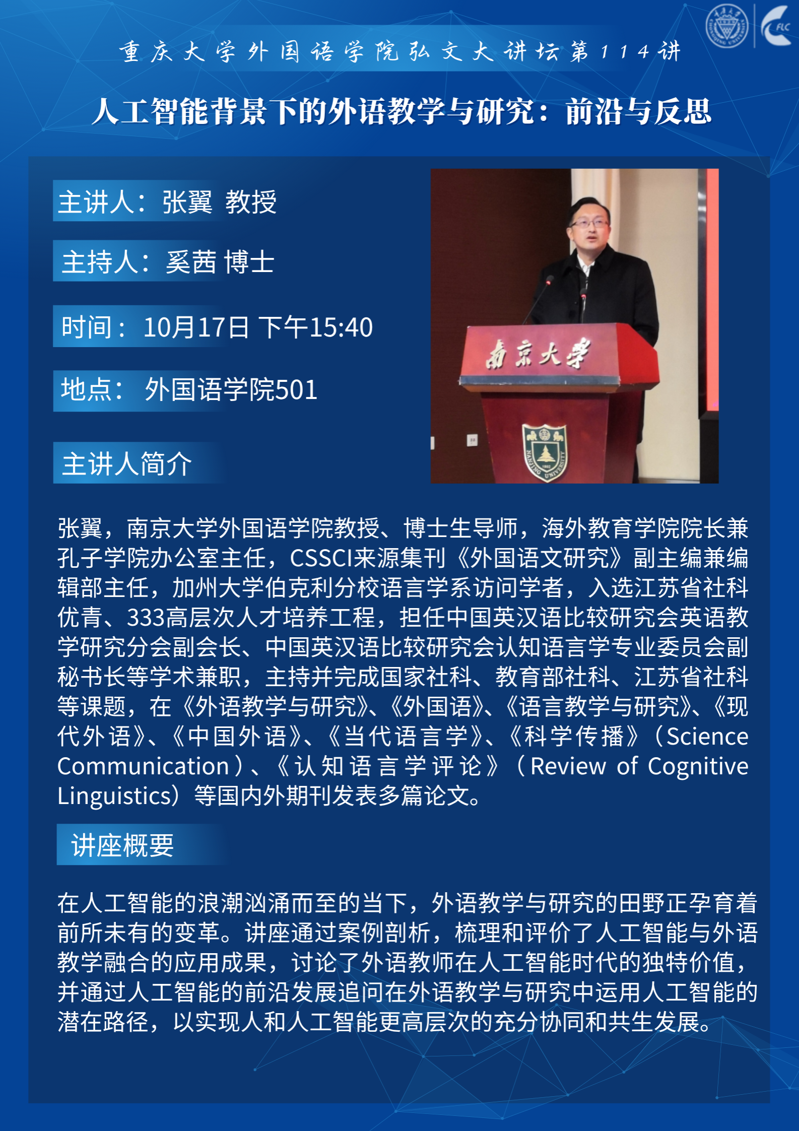 讲座|人工智能背景下的外语教学与研究:前沿与反思