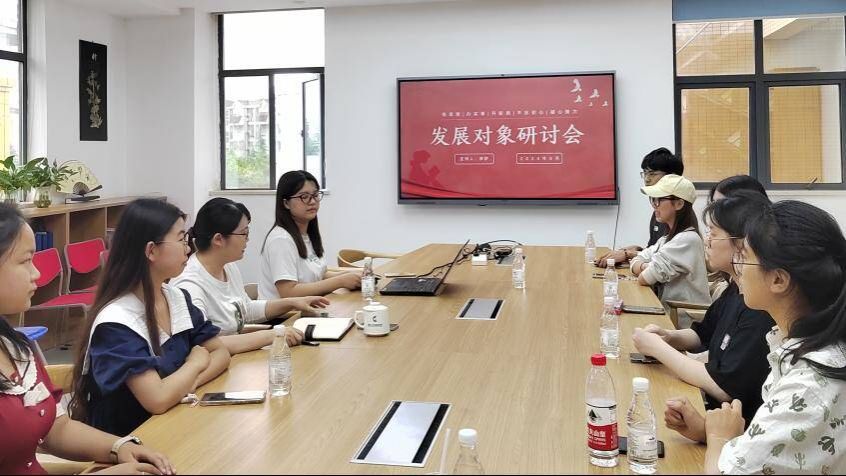楼416会议室召开了发展对象分组研讨会。学院党委组织员刘培老师及本科生支部全体党员发展对象参加了会议,会议由本科生支部李梦同志主持。
