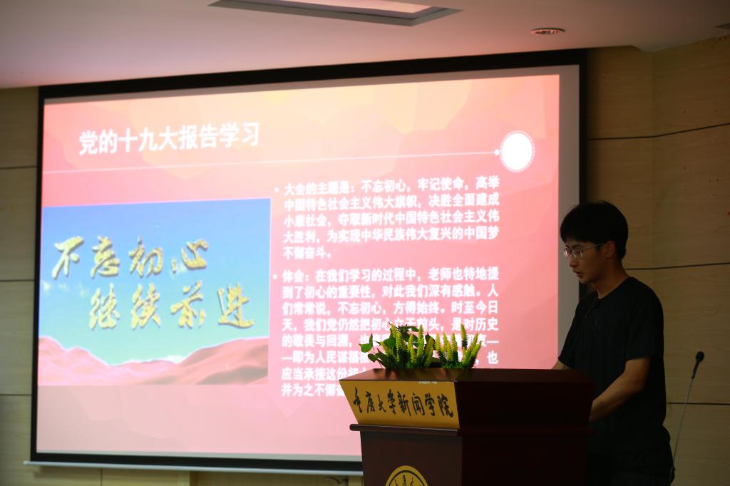 通过课堂教学“不忘初心,牢记使命,驾驭智能技术,创造美好生活”“聚焦党的十九大”以及“努力成为一名合格的大学生党员”的党课学习,同学们加深了对党的基本政策和属性的理解,并结合各自的专业特色和视角进行了解读。在第八组的成果汇报中,新闻学院学生以习近平的新闻思想为视角切入,阐释了习近平的新闻思想以及对新闻事业和新闻学子的要求;软件学院学生着眼于互联网的重要性,致力于加强自身专业能力,加快信息化服务普及,为老百姓提供用得上、用得起、用得好的信息服务;外语学院则对单词“PARTY”的各个字母通过今昔照片对比的方式进行思考和解读。
