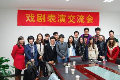 由毛凌滢、盛荔、张宏、陈亭四位老师带领的戏剧社全体成员与台湾东吴大学《亨利五世》剧组的三名同学在学院419会议厅召开戏剧交流会议。在此次会议中,台湾东吴大学的三名同学根据自己曾在“中国大学莎士比亚戏剧大赛”获得冠军的经验与技巧对本院戏剧社同学做出指导并和伦理电影