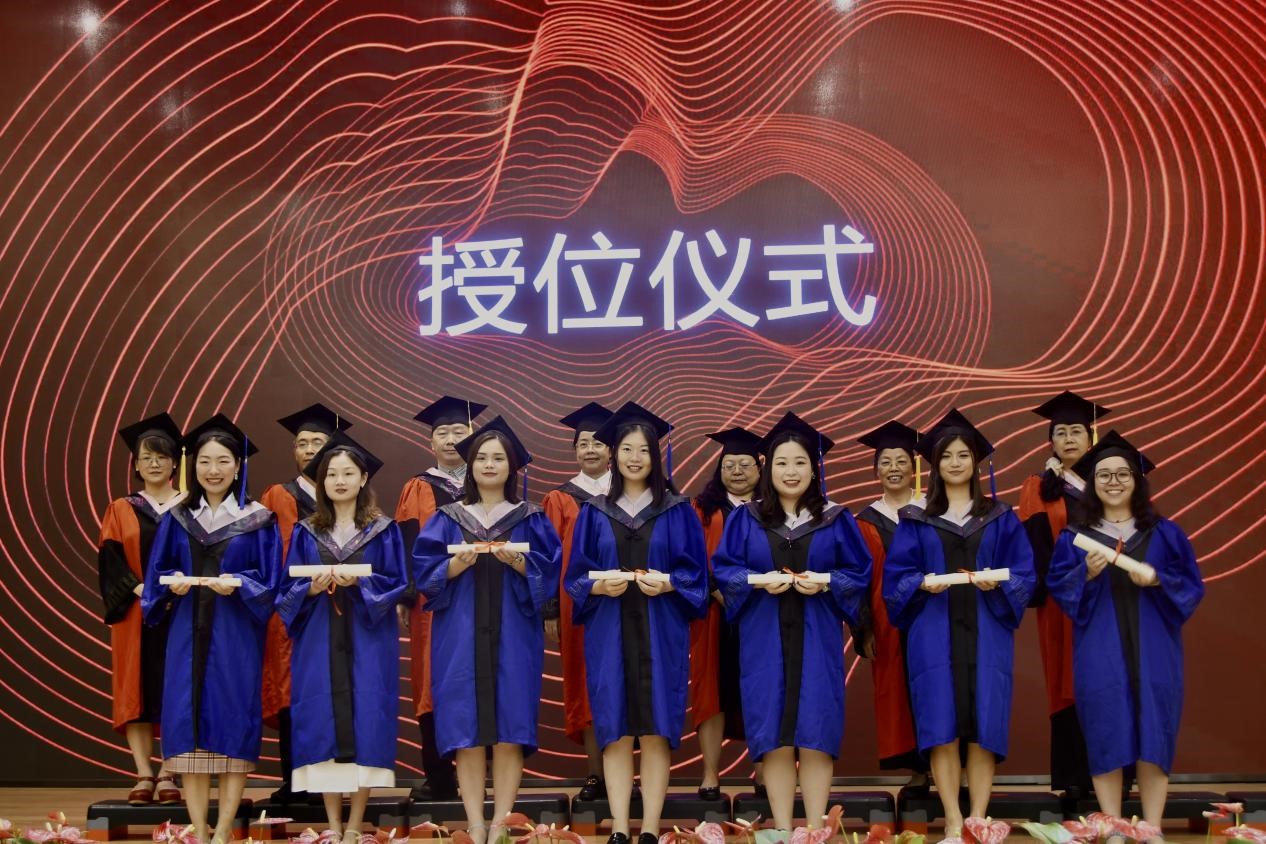 接下来,隆重的学位授予仪式正式开始。学位授位的委员会委员们依次为上台的毕业生颁发硕士、学士学位证书,并为他们拨穗正冠以表祝愿。