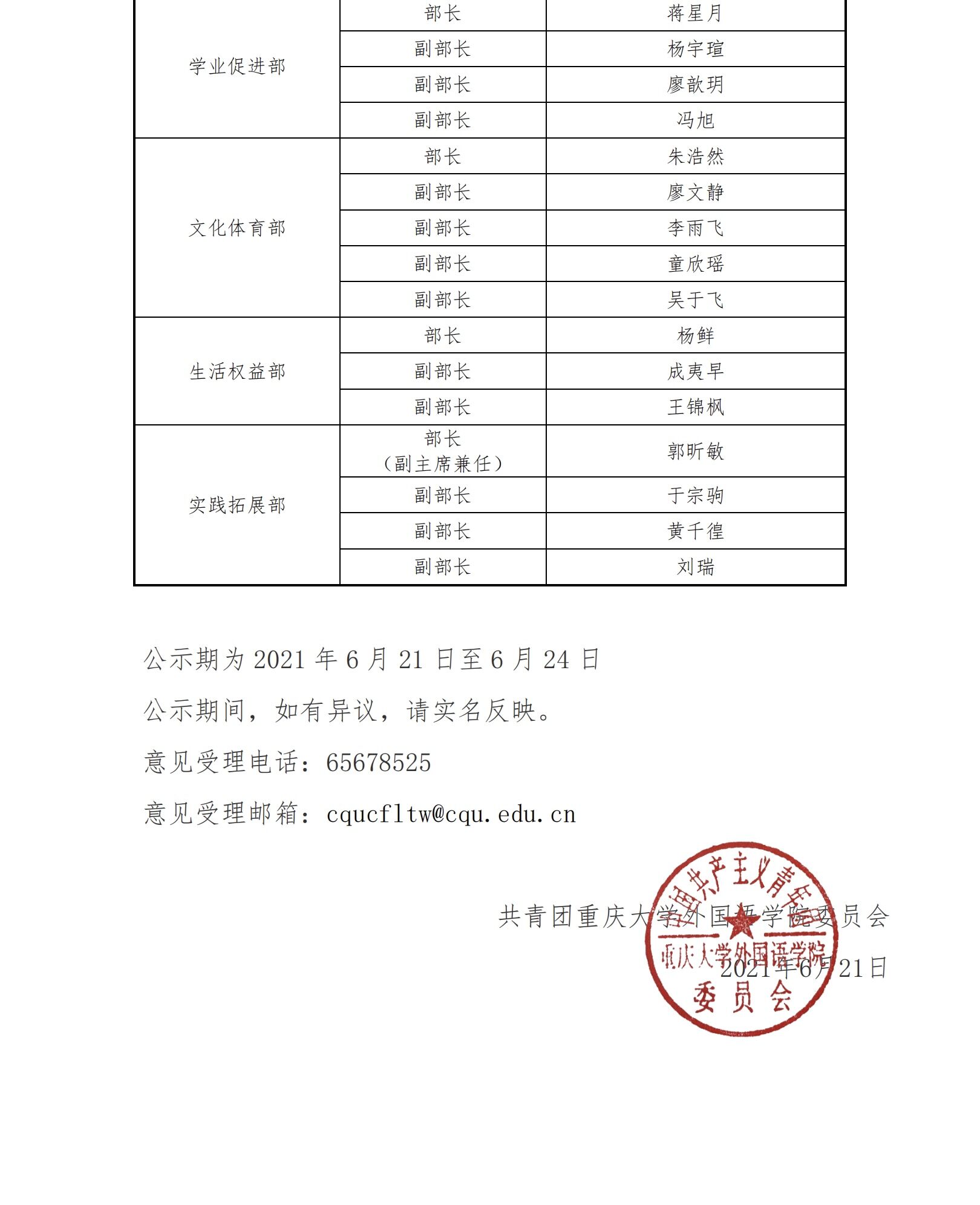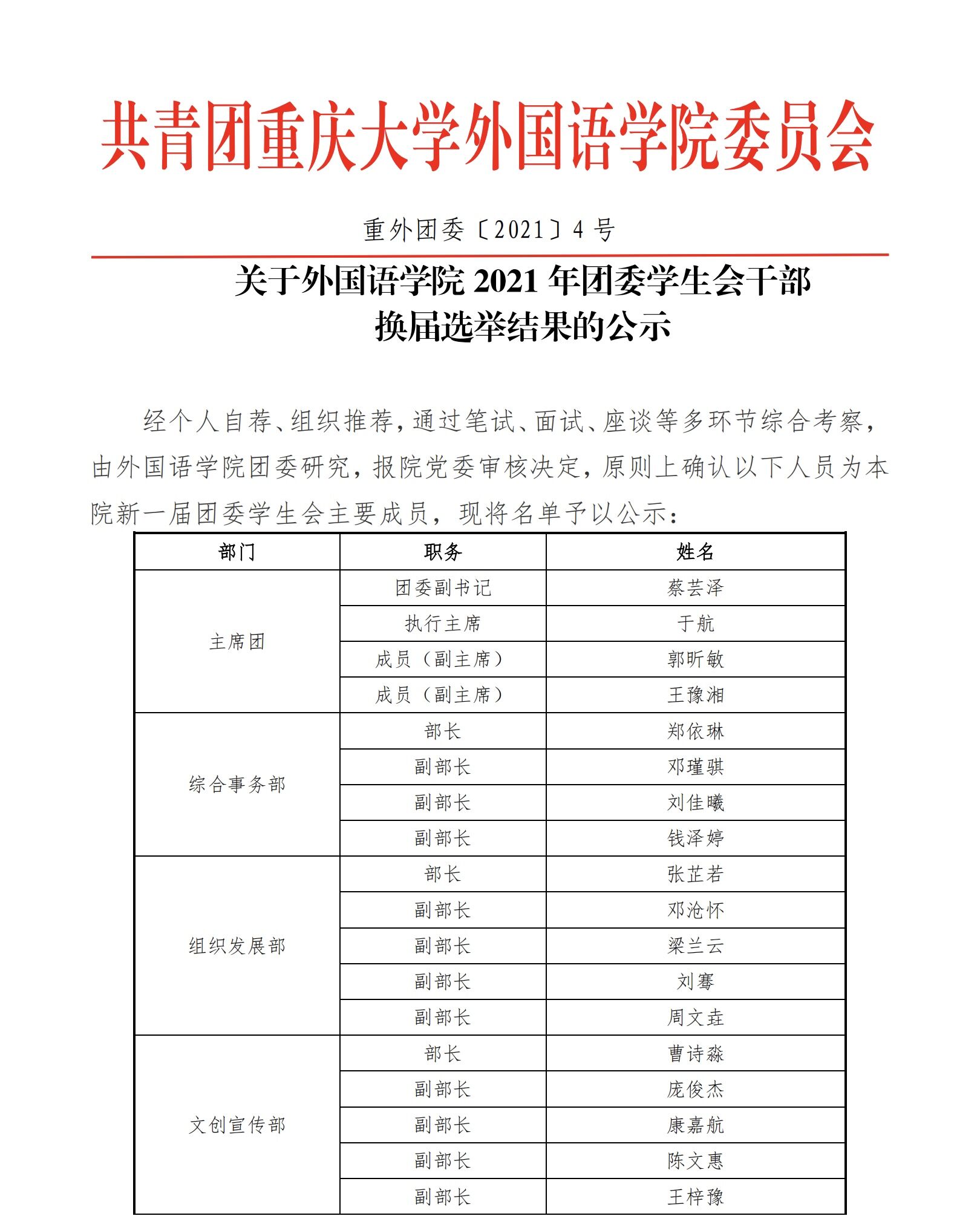 关于 伦理电影 2021 年团委学生会干部 换届选举结果的公示