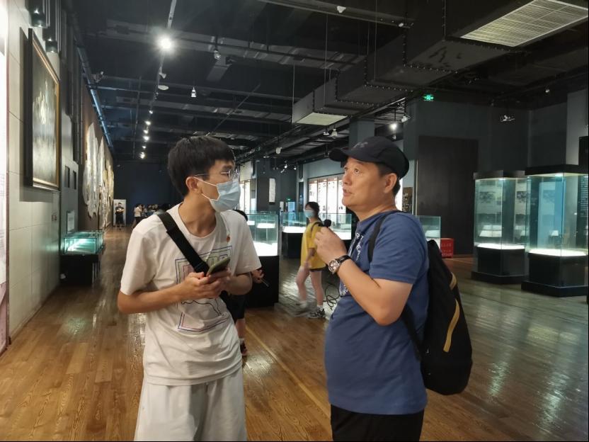 为了进一步探索红色基地内庆贺建党百年的红色标语的宣传效果,实践团成员对参观红岩魂陈列馆的部分进行了相关采访。第一位接受采访的是来自辽宁省的李晓峰(化名)先生,他表示自己注意到在红岩魂陈列馆的正门处悬挂着庆贺建党百年的相关红色宣传标语,这些标语让他在学习红岩文化的同时,联想起中国共产党的百年奋斗历史,感叹幸福生活的来之不易,并对重庆市内红色文化的宣传教育表示高度称赞。