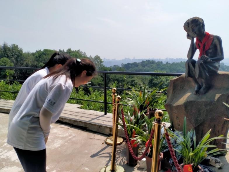实践团于“小萝卜头”雕像前鞠躬悼念