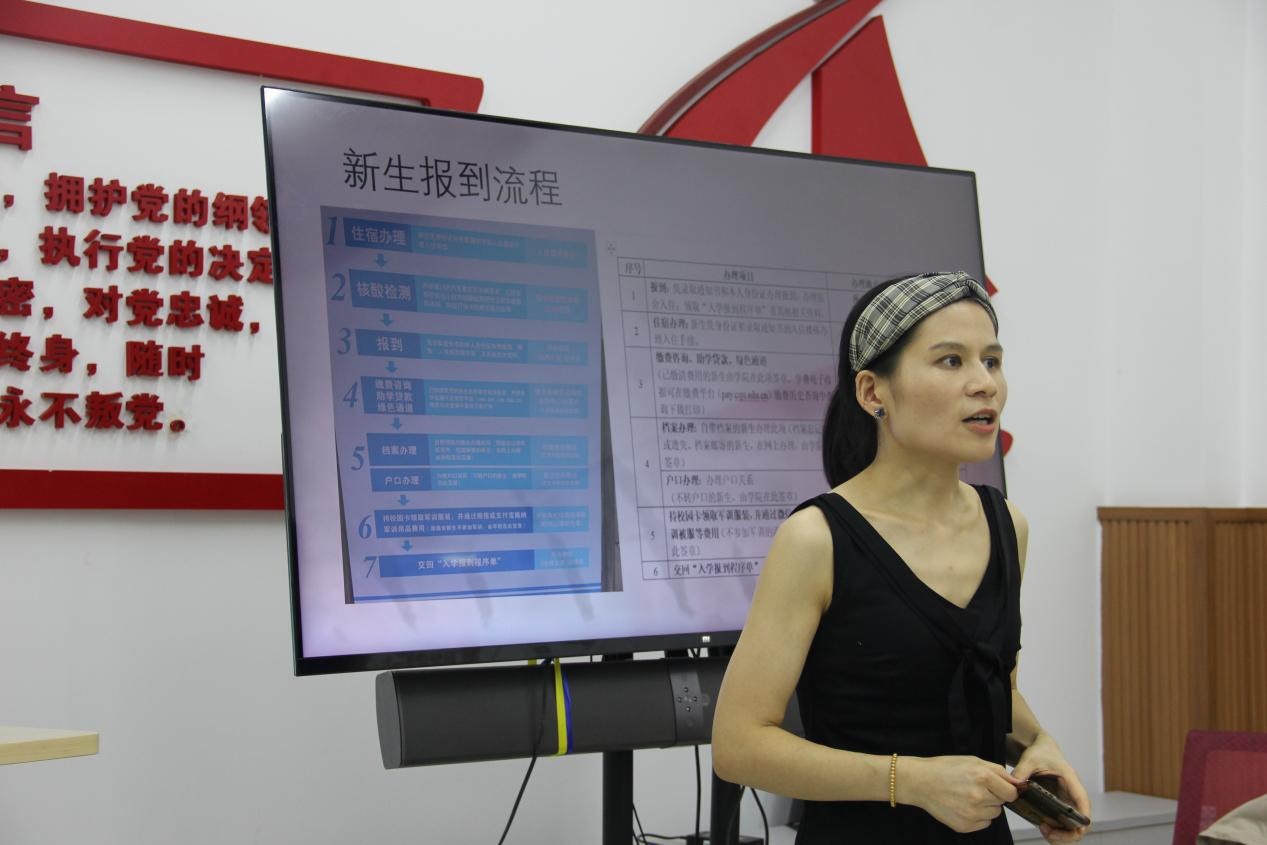 2021级辅导员张茹老师根据学校迎新工作安排及疫情防控要求,围绕各迎新咨询点的工作职责及注意事项进行了总体的工作安排。