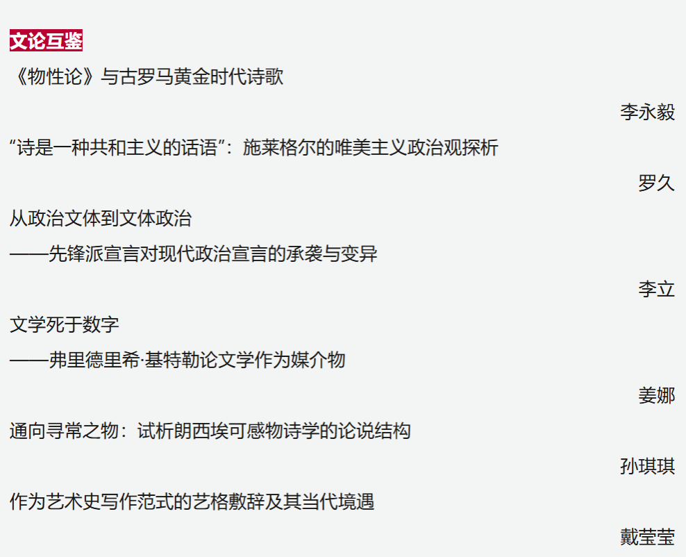李永毅教授的文章《〈物性论〉与古罗马黄金诗歌》在《文艺理论研究》2025年第1期发表。《文艺理论研究》是中国语言文学学科的顶级刊物之一,这是李永毅教授第三次在该刊物上发文,三篇文章分别讨论古罗马诗人贺拉斯、奥维德和卢克莱修。